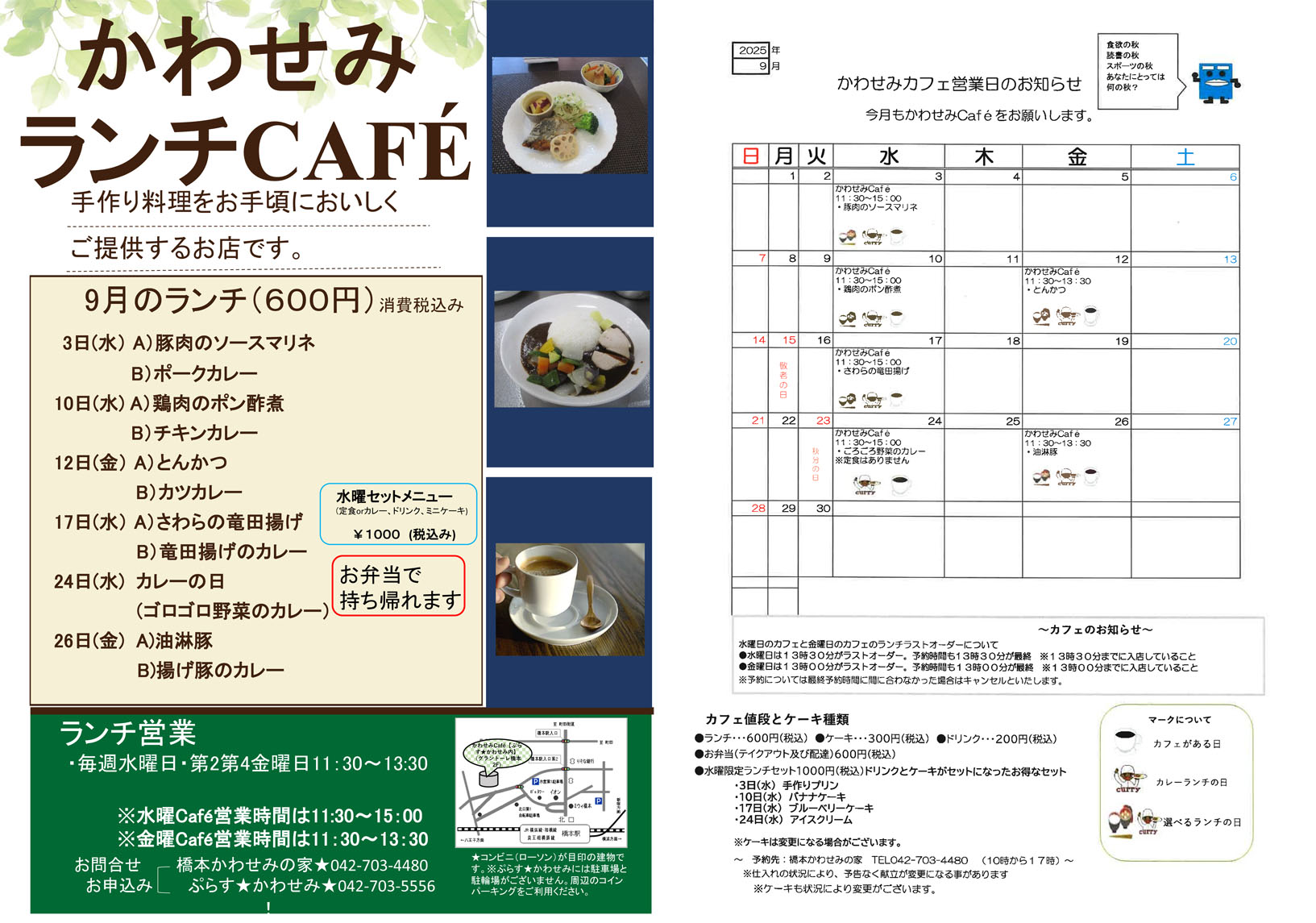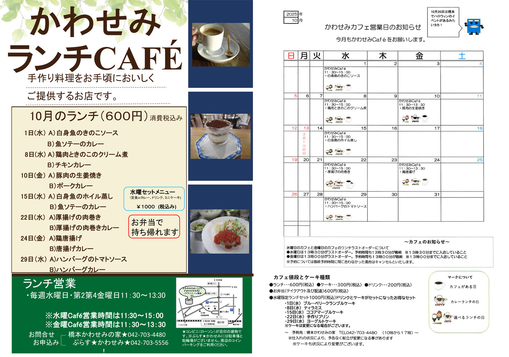 開所時間 | 月・火・水・木・金・第1土曜日 9:00〜17:00 ※ランチCAFÉの営業時間はこちらをご確認ください。 |